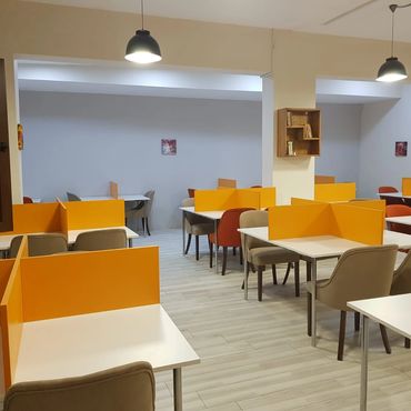 Cafe şıklığında dizayn edilmiş yemekhanemizde hem lezzetli yemeklerin tadını çıkarabilir hem de konforlu oturma alanlarında arkadaşlarınızla sosyalleşebilirsiniz. Ayrıca yemekhanemizde öğrencilerimizin ortak kullanıma açık: